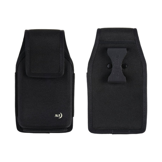 Made of durable ballistic material to protect from impacts, and accented with weather-resistant, rugged hypalon material, this case is designed to keep even the largest phone safe and at-hand on your belt, in a fixed horizontal position. Your phone stays secure with a durable hook and loop lid closure, and an interior pocket provides a handy place to store ID, credit cards, or cash. Perfect for rugged work or play environments of nearly every kind.