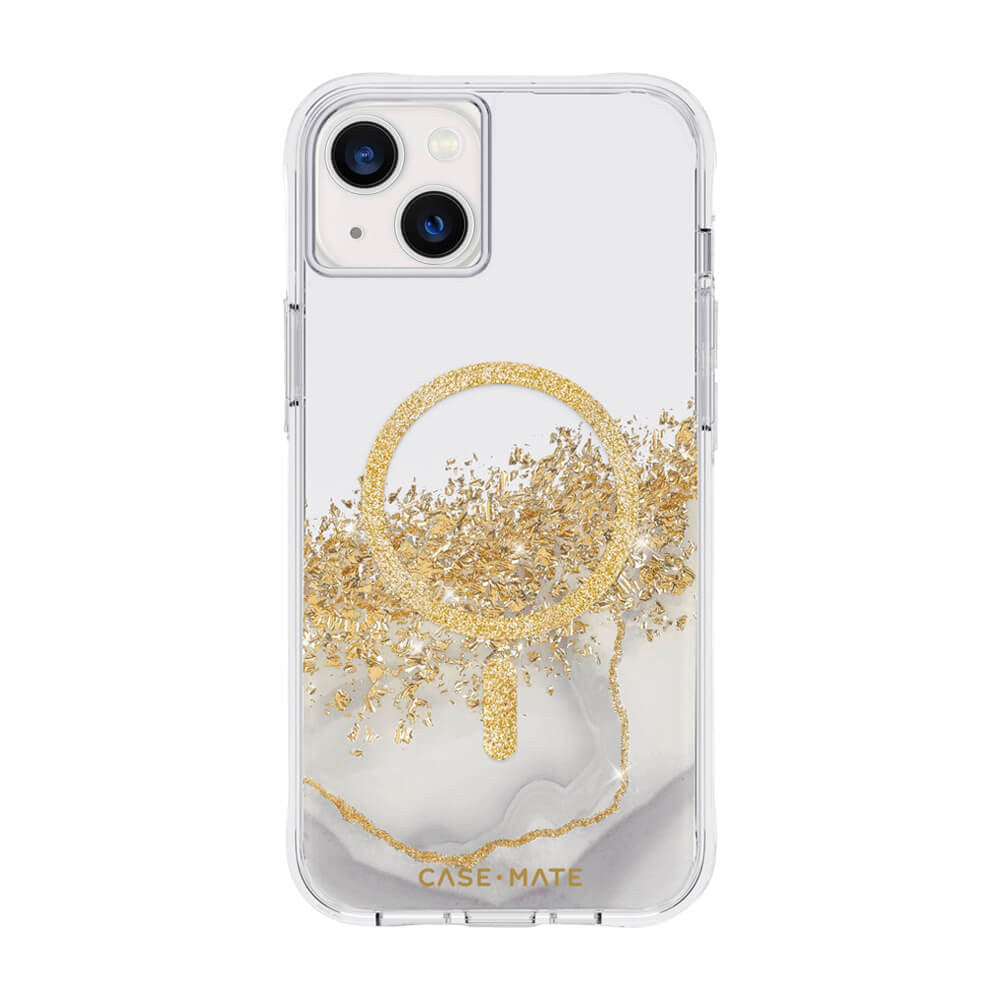 The Case-Mate Karat MagSafe brings the traditional white marble design with a pop of gold karat bling for your iPhone 14 Plus while also featuring 10 ft drop protection and MagSafe compatibility.